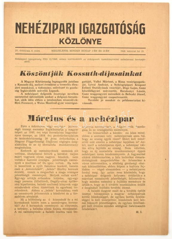 1949 Nehézipari Igazgatóság közlönye. Felelős szerkesztő: Dr. Herczeg ... https://www.darabanth.com/de/473-Fernauktion/473.0/Kunst-Dokumente-andere-Sammelgebiete/Drucksachen~1000013/1949-Nehezipari-Igazgatosag-kozlonye-Felelos-szerkeszto-Dr-Herczeg-Istvan-10p~II3201615