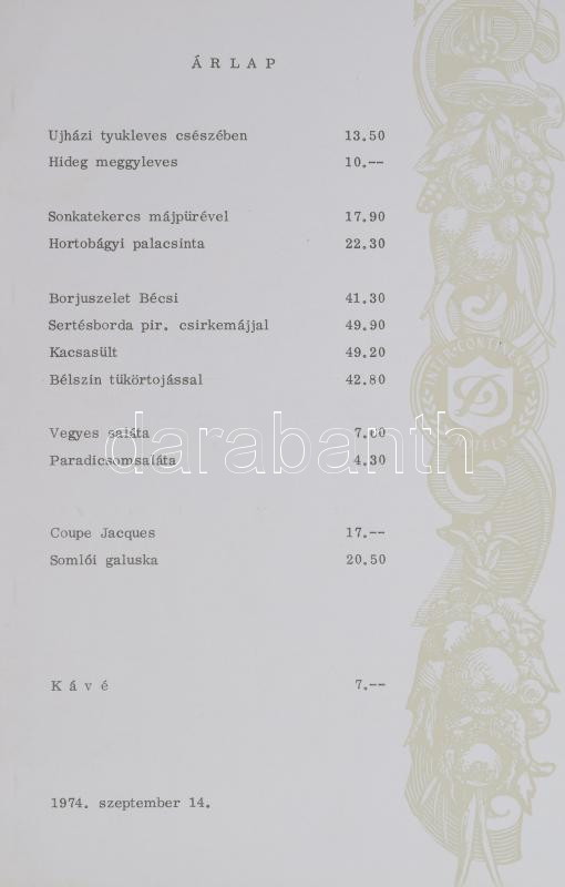 1974 Hotel Intercontinental étlap https://www.darabanth.com/de/473-Fernauktion/473.0/Kunst-Dokumente-andere-Sammelgebiete/Drucksachen~1000013/1974-Hotel-Intercontinental-etlap~II3184892