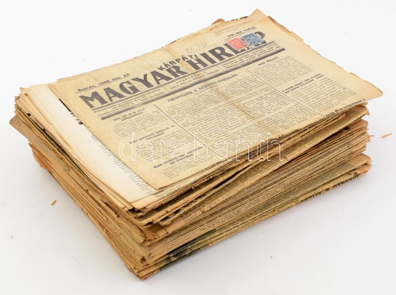 cca 1925-1938 Vegyes újság tétel: Kárpáti Magyar Hírlap, Nemzeti újság... https://www.darabanth.com/de/473-Fernauktion/473.0/Kunst-Dokumente-andere-Sammelgebiete/Drucksachen~1000013/cca-1925-1938-Vegyes-ujsag-tetel-Karpati-Magyar-Hirlap-Nemzeti-ujsag-Kepes-Figyelo-stb-~II3212651