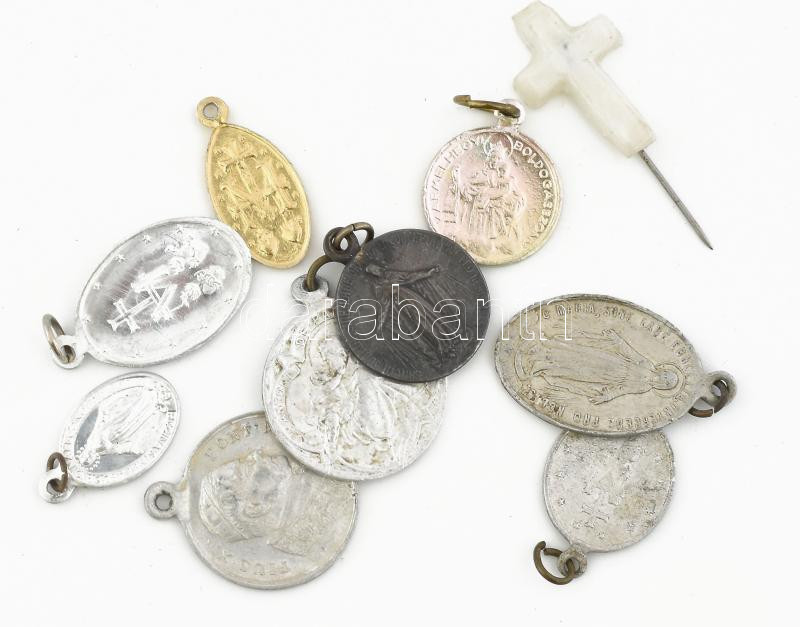 Beschreibung: 10 db vallási medál, kis kegytárgy