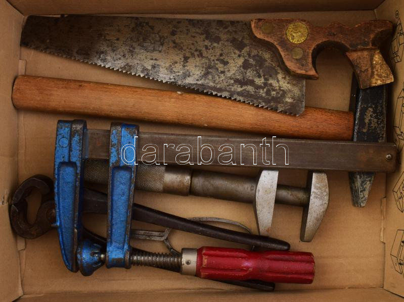 6 darab régi szerszám: fűrész, franciakulcs, harapófogó, kalapács, pil... https://www.darabanth.com/de/473-Fernauktion/473.0/Kunst-Dokumente-andere-Sammelgebiete/Flohmarkt~500016/6-darab-regi-szerszam-furesz-franciakulcs-harapofogo-kalapacs-pillanatszorito-stb~II3206758