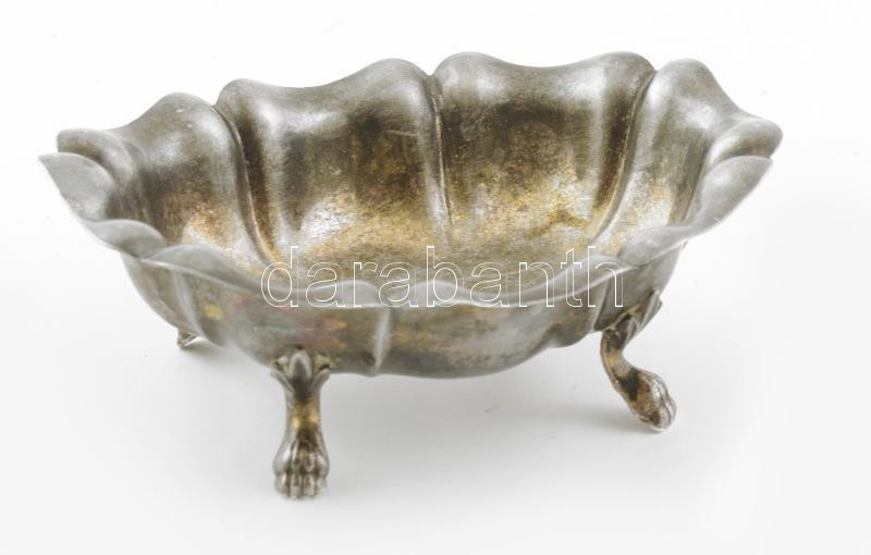 Beschreibung: Antik ezüstözött fűszerkínáló, 4 körmös lábon, jelzett, 11x8,5 cm