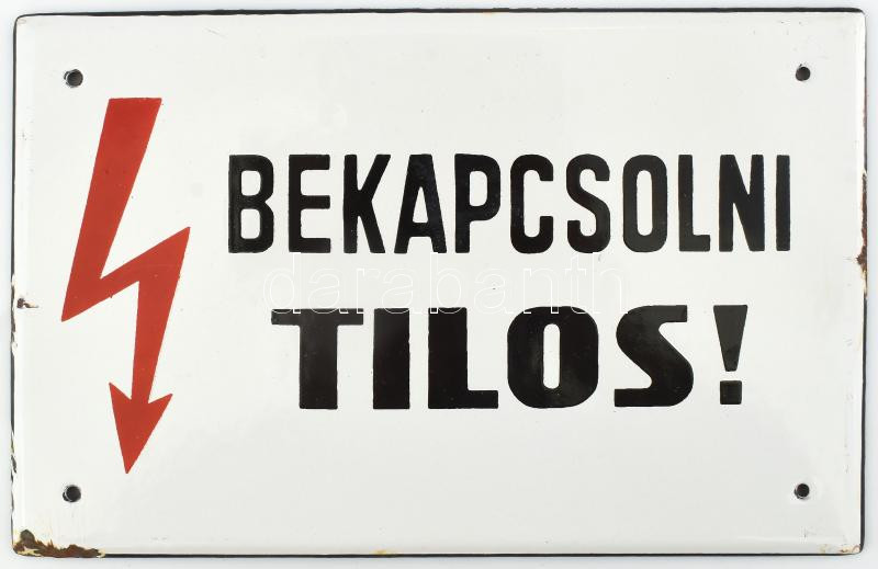 Zománcozott fém tábla, "Bekapcsolni Tilos! " felirattal, kis... https://www.darabanth.com/de/473-Fernauktion/473.0/Kunst-Dokumente-andere-Sammelgebiete/Flohmarkt~500016/Zomancozott-fem-tabla-Bekapcsolni-Tilos-felirattal-kis-zomanchibakkal-15-5x25-cm~II3210593