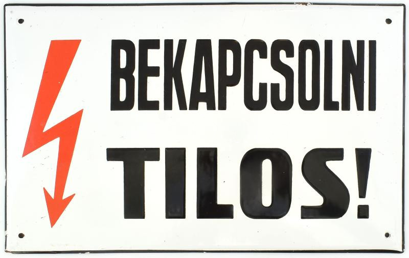 Zománcozott fém tábla, "Bekapcsolni tilos!" felirattal, kis ... https://www.darabanth.com/de/473-Fernauktion/473.0/Kunst-Dokumente-andere-Sammelgebiete/Flohmarkt~500016/Zomancozott-fem-tabla-Bekapcsolni-tilos-felirattal-kis-zomanchibaval-24-5x39-cm~II3210602