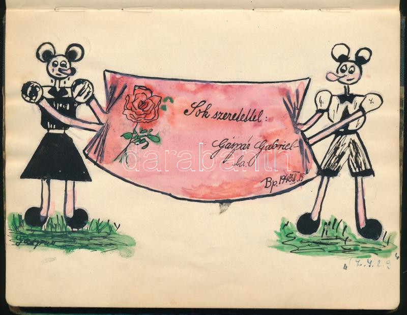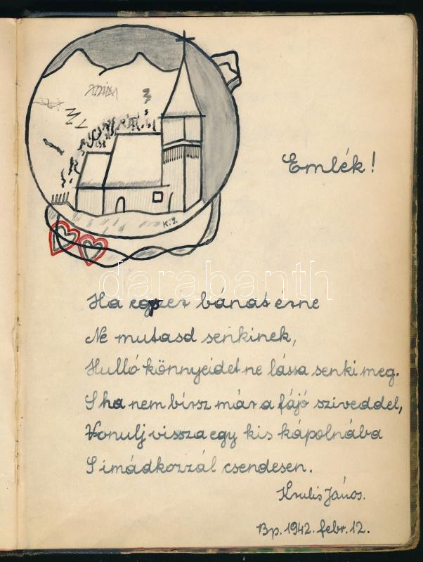 1940-1945 Régi emlékkönyv kb. 40 db bejegyzéssel, kb. 20 db rajzzal https://www.darabanth.com/de/473-Fernauktion/473.0/Kunst-Dokumente-andere-Sammelgebiete/Historische-Dokumenten-Handschriften~500023/1940-1945-Regi-emlekkonyv-kb-40-db-bejegyzessel-kb-20-db-rajzzal~II3207785