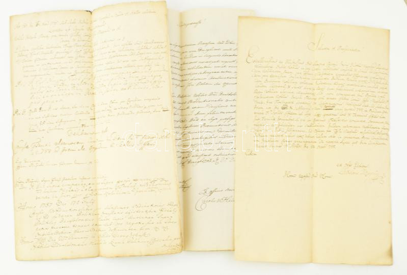 Beschreibung: ca 1720 A Keczer nemes családdal kapcsolatos 3 db hivatalos levél, nagyszőllősi, péterfalvai birtok vonatkozásában,