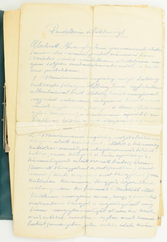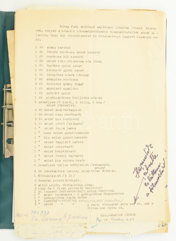 cca 1924-2006 Haranghy Jenő festőművész rendelkezés és kötelezvény 1924-ből, két kézzel írt oldal, Haranghy Jenő autográf aláírásával + Haranghy Jenő művészeti hagyatékának leltára és értékbecslése, kézzel írt + egyéb iratok, Haranghy Jenő leszármazottaira vonatkozó levelezés, közte Haranghy család nemesi leveléről.