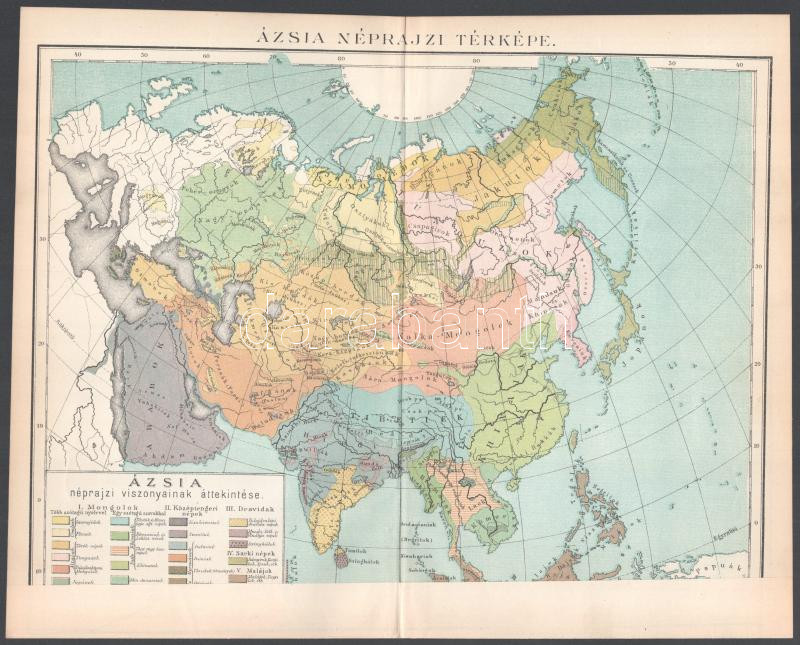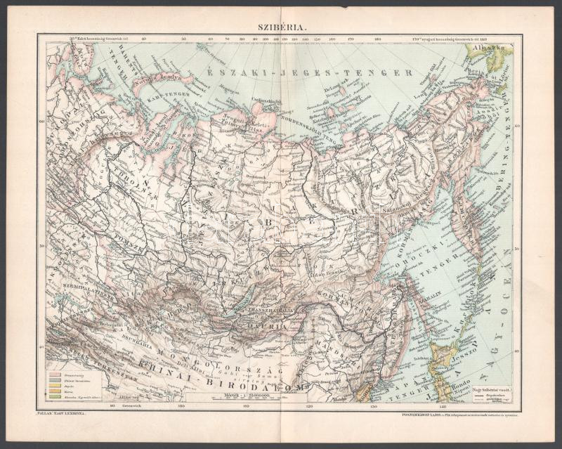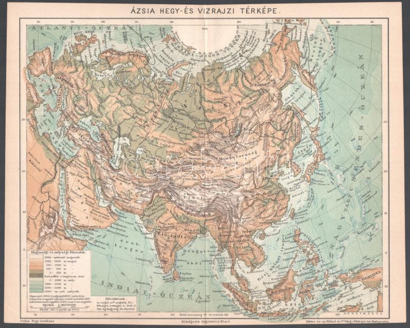 5 db térkép Pallas Nagy Lexikonából és egy litográf illusztráció (Ázsia hegy- és vízrajzi térképe, Ázsia újabb és legfontosabb fölfedező utak térképe, Belső-Ázsia, Szibéria), 24×29 cm