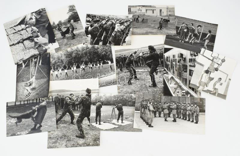 cca 1970-1980 Rendőröket, határőröket ábrázoló fotók: lőgyakorlat, közelharci és kutyás kiképzés, futballmérkőzés, stb., össz. 14 db, többségében jelzettek, 15x12 cm és 24x19 cm között