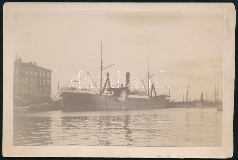 Beschreibung: cca 1900-1910 Adria Rt. Báthori gőzös a kikötőben, keményhátú fotó 13,2x19,8 cm
