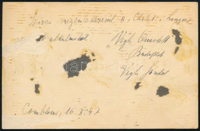 1947 Combloux (Franciaország), Végh Sándor (1912-1997) hegedűművész, k... https://www.darabanth.com/de/473-Fernauktion/473.0/Kunst-Dokumente-andere-Sammelgebiete/Signatur~500024/1947-Combloux-Franciaorszag-Vegh-Sandor-1912-1997-hegedumuvesz-karmester-a-Vegh-Quarte~II3177229