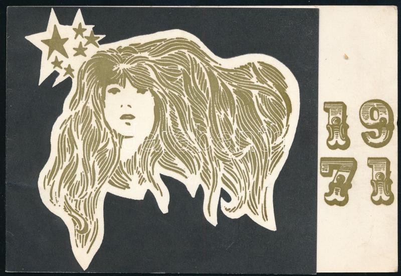 Beschreibung: 1971 A Gemini együttes tagjainak aláírásai karácsonyi-újévi üdvözlőlapon: Várszegi Gábor, Bardóczi Gyula, Szabó György, stb.