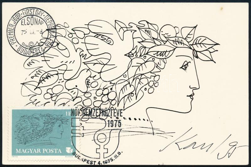Beschreibung: 1975 A nők nemzetközi éve CM a tervező, Kass János aláírásával
