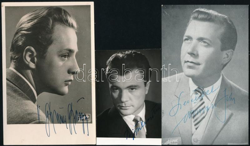 Beschreibung: 5 db magyar színész aláírása őket ábrázoló fotón és fotólapon