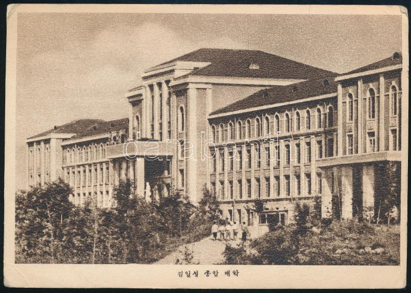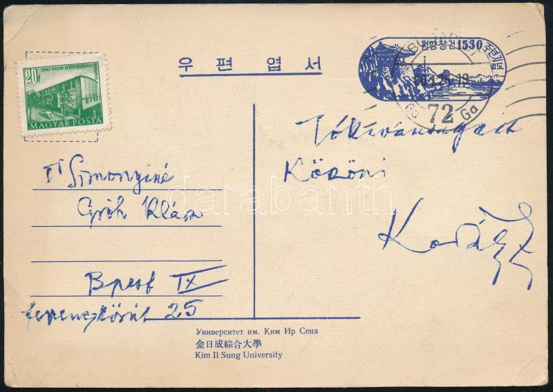 Beschreibung: cca 1960 Kodály Zoltán (1882-1967), zeneszerző autográf sorai és aláírása észak-koreai képeslapon