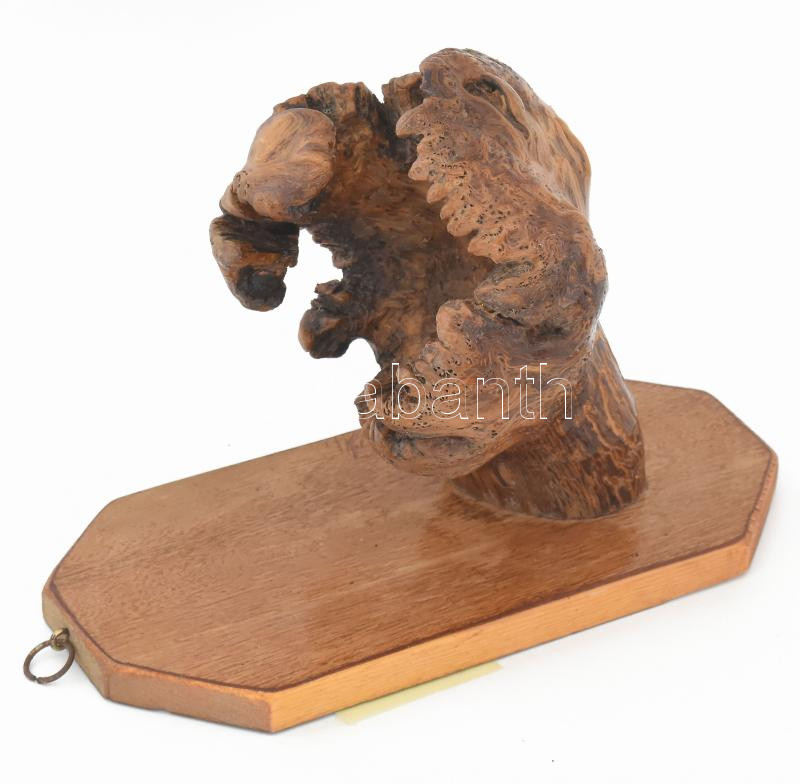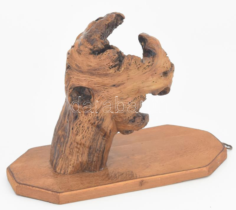 Fa szobor, fali dísz, fa alapon. 25x21 cm