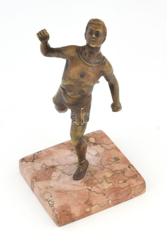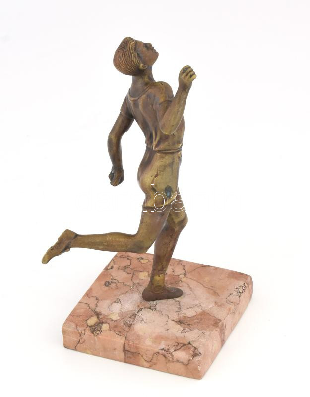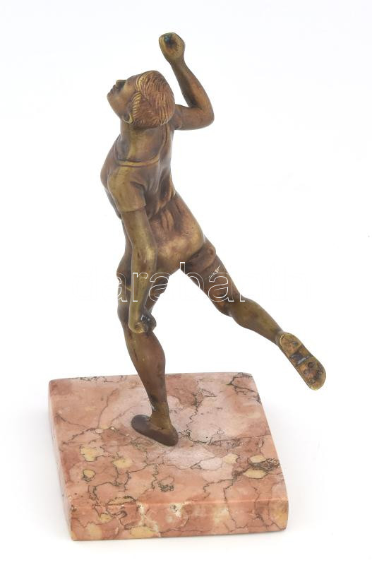Beschreibung: cca 1940, Bronz sportoló figura, márvány talpazaton, m: 18 cm
