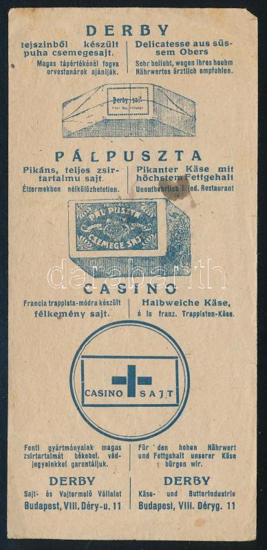 Derby-Pálpuszta-Casino sajt számolócédula. https://www.darabanth.com/de/473-Fernauktion/473.0/Kunst-Dokumente-andere-Sammelgebiete/Werbungen~1000001/Derby-Palpuszta-Casino-sajt-szamolocedula~II3192321