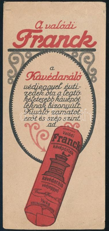 Franck kávé számolócédula, ragasztással. https://www.darabanth.com/de/473-Fernauktion/473.0/Kunst-Dokumente-andere-Sammelgebiete/Werbungen~1000001/Franck-kave-szamolocedula-ragasztassal~II3191178