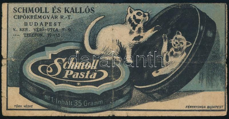 Schmoll Pasta számolócédula, hajtásnyomok mentén kisebb szakadásokkal https://www.darabanth.com/de/473-Fernauktion/473.0/Kunst-Dokumente-andere-Sammelgebiete/Werbungen~1000001/Schmoll-Pasta-szamolocedula-hajtasnyomok-menten-kisebb-szakadasokkal~II3212513