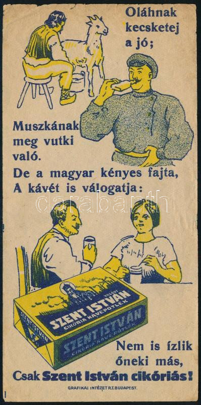 Szent István cikóriakávé számolócédula, kis gyűrődéssel https://www.darabanth.com/de/473-Fernauktion/473.0/Kunst-Dokumente-andere-Sammelgebiete/Werbungen~1000001/Szent-Istvan-cikoriakave-szamolocedula-kis-gyurodessel~II3212295