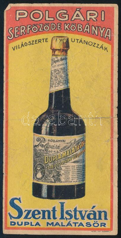 Szent István dupla malátasör, Polgári Serfőződe Kőbánya számolócédula,... https://www.darabanth.com/de/473-Fernauktion/473.0/Kunst-Dokumente-andere-Sammelgebiete/Werbungen~1000001/Szent-Istvan-dupla-malatasor-Polgari-Serfozode-Kobanya-szamolocedula-hajtott-szakadas~II3191921