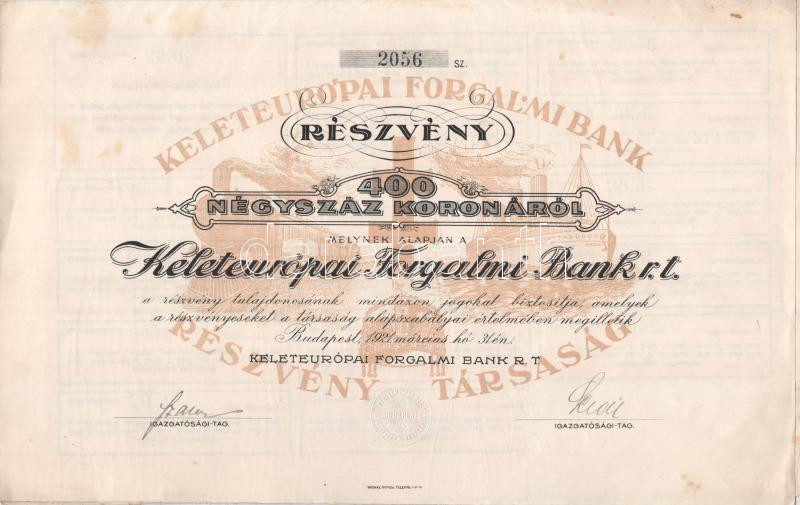 udapest 1921. "Keleteurópai Forgalmi Bank" részvénye 400K-ró... https://www.darabanth.com/de/473-Fernauktion/473.0/Numismatik/Aktien-und-Tickets~1500006/udapest-1921-Keleteuropai-Forgalmi-Bank-reszvenye-400K-rol-szelvenyekkel-szarazpecsettel~II3212326