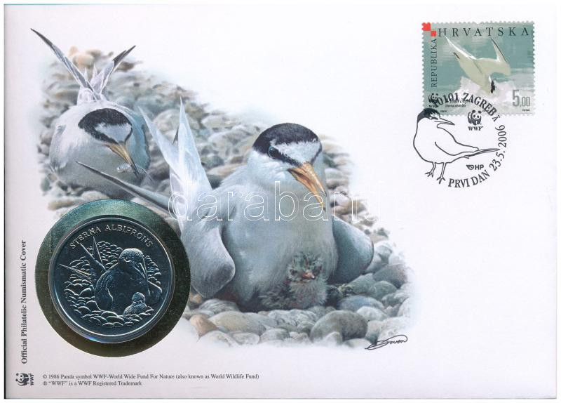 Horvátország DN (1991) "A Világ Vadvédelmi Alap (WWF) 30. évfordulója - Sterna Albifrons (Kis csér)" kétoldalas fém emlékérem érmés borítékban, bélyeggel és bélyegzéssel, német nyelvű ismertetővel T:PP