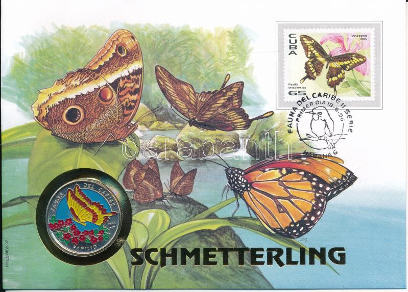 Kuba 1996. 10P Ni-acél "Fauna del Caribe - Papilio" érmés borítékban, bélyegzéssel, német nyelvű leírással T:UNC