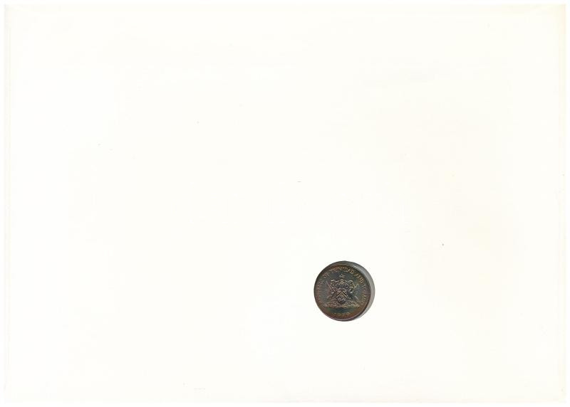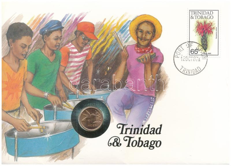 Trinidad és Tobago 1973. 1c bronz "A függetlenség 10. évfordulójára" érme felbélyegzett borítékban, bélyegzéssel T:AU Trinidad and Tobago 1973. 1 Cent bronze "10th Anniversary of Independence" coin in envelope with stamp, cancellation C:AU