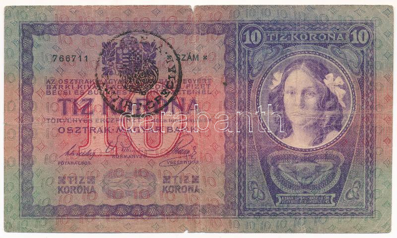 1904. 10K fekete "ROMANIA TIMBRU SPECIAL" felülbélyegzéssel ... https://www.darabanth.com/de/473-Fernauktion/473.0/Numismatik/Ungarische-Banknoten~1500008/1904-10K-fekete-ROMANIA-TIMBRU-SPECIAL-felulbelyegzessel-TF-beszakadas-Adamo-K10Be~II3202692