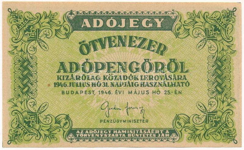 Beschreibung: 1946. 50.000AP sorszám nélkül, vízjeles papíron T:AU