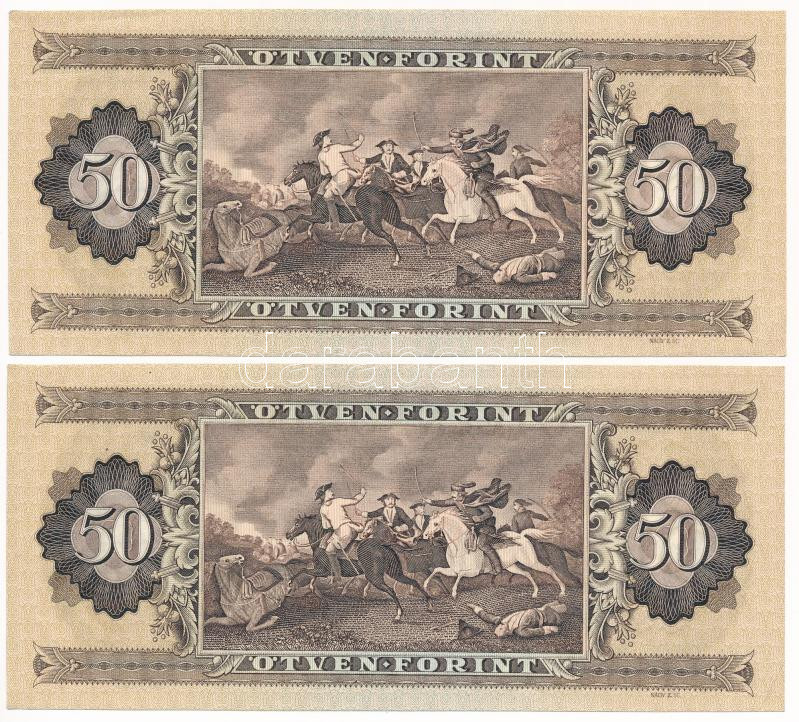 Beschreibung: 1980. 50Ft (2x) sorszámkövetők "D 216 095761 - D 216 095762" nyomdai papírránccal T:VF,F szép papír Adamo F22