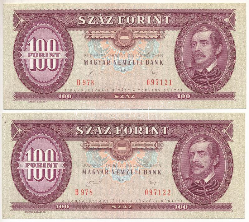 1989. 100Ft (2x) sorszámkövetők "B 978 097121 - B 978 097122"... https://www.darabanth.com/de/473-Fernauktion/473.0/Numismatik/Ungarische-Banknoten~1500008/1989-100Ft-2x-sorszamkovetok-B-978-097121-B-978-097122-TXF--Adamo-F37~II3212946