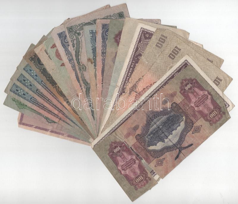 Beschreibung: 19db-os vegyes pengő, Vörös Hadsereg pengő bankjegy tétel T:F-VG közte szakadt is