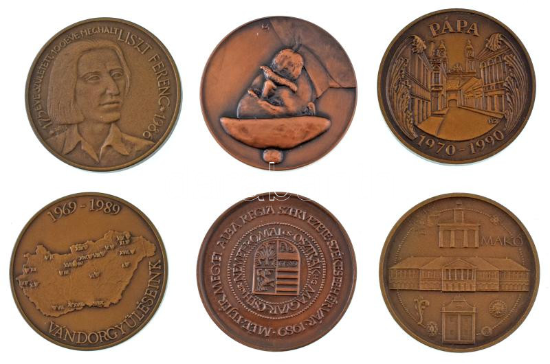 6db-os bronz emlékérem-tétel, közte DN "Stróbl Alajos" kétoldalas bronz emlékérem (42,5mm) + Bognár György (1944-) 1990. "20 éves a MÉE Pápai Csoportja / Pápa 1970-1990" bronz emlékérem (42,5mm) + Fritz Mihály (1947-) 1989. "Albert király 1437-1439 / MÉE Székesfehérvár" bronz emlékérem (42,5mm) T:UNC-XF