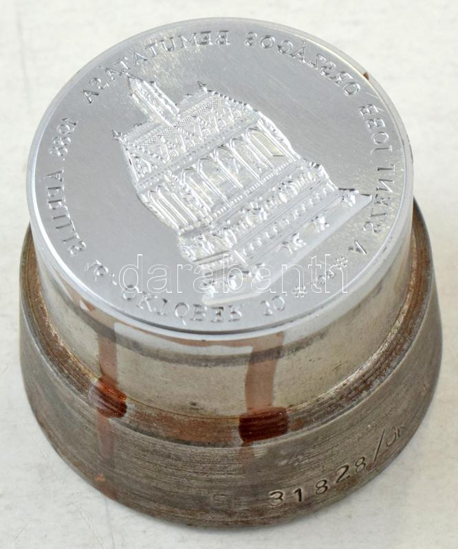 Bognár György (1944-) 1988. "MÉE - Államalapító királyunk emlékére / A Szent Jobb országos bemutatása" emlékérem hátlapi verőtöve, készült az érem kibocsátásának idején a Pénzverőben (42,5mm), PP változat