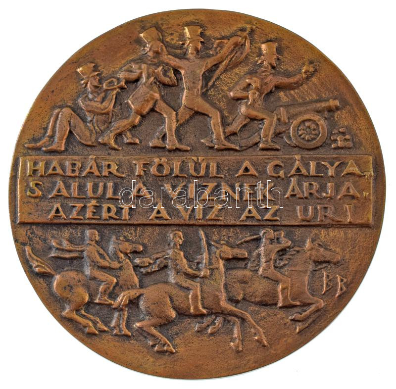 Búza Barna (1910-2010) DN "Petőfi Sándor / Habár fölűl a gálya, S alúl a víznek árja, Azért a víz az úr!" kétoldalas öntött bronz emlékérem eredeti tokban (97mm) T:AU