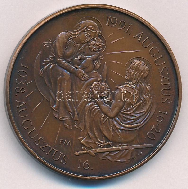 Fritz Mihály (1947-) 1991. "Életünk Krisztus / 1038. Augusztus 16. - 1991. Augusztus 16-20." kétoldalas bronz emlékérem (42,5mm) T:AU kis, felszíni karc
