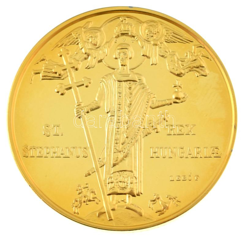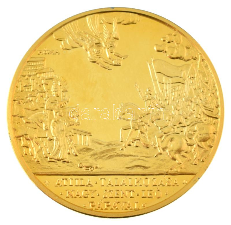 Lebó Ferenc (1960-) 1994. "Atilla találkozása Nagy Szent Leó pápával / Szent István" aranyozott bronz emlékérem sérült kapszulában (42,5mm) T:AU (eredetileg PP) folt