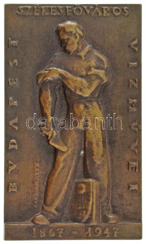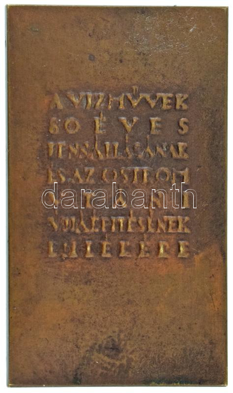 Madarassy Walter (1909-1994) 1947 "Budapest Székesfőváros Vízművei/ A Vízművek 80 éves fennálásának és az ostrom utáni újjáépítésének emlékére" létoldalas bronz plakett 83x50 mm T.XF