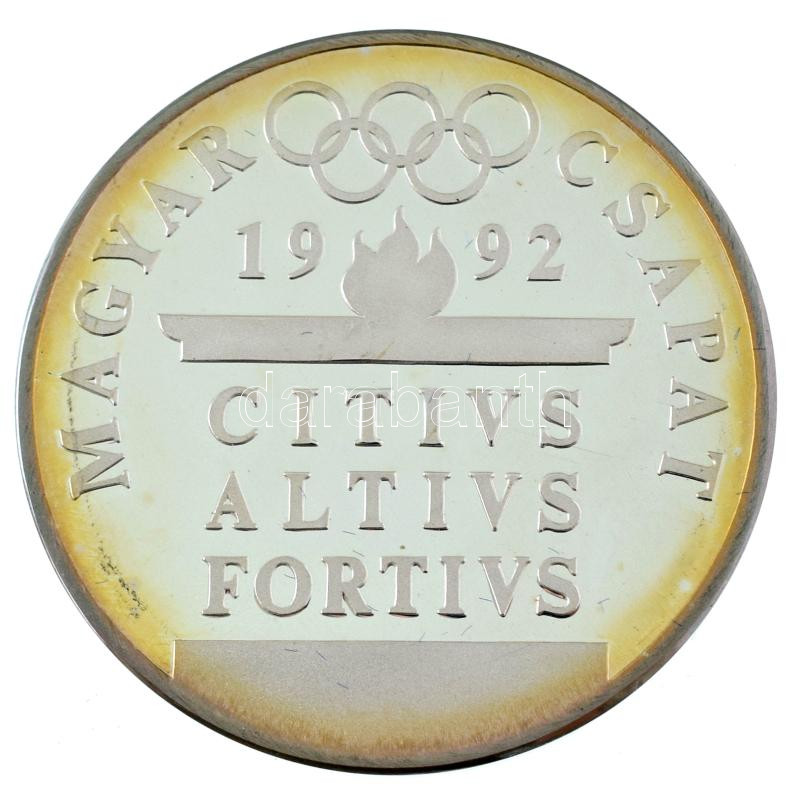 Papp László (1947-) 1990. "Magyar Csapat 1992 - CITIVS, ALTIVS, FORTIVS / Vízilabda" a Barcelonában rendezett nyári Olimpia alkalmából készült, jelzetlen Ag emlékérem kapszulában, sorszámozott "3239" tanúsítvánnyal, eredeti dísztokban (31,5g/0,925/42,5mm) T:AU (PP)