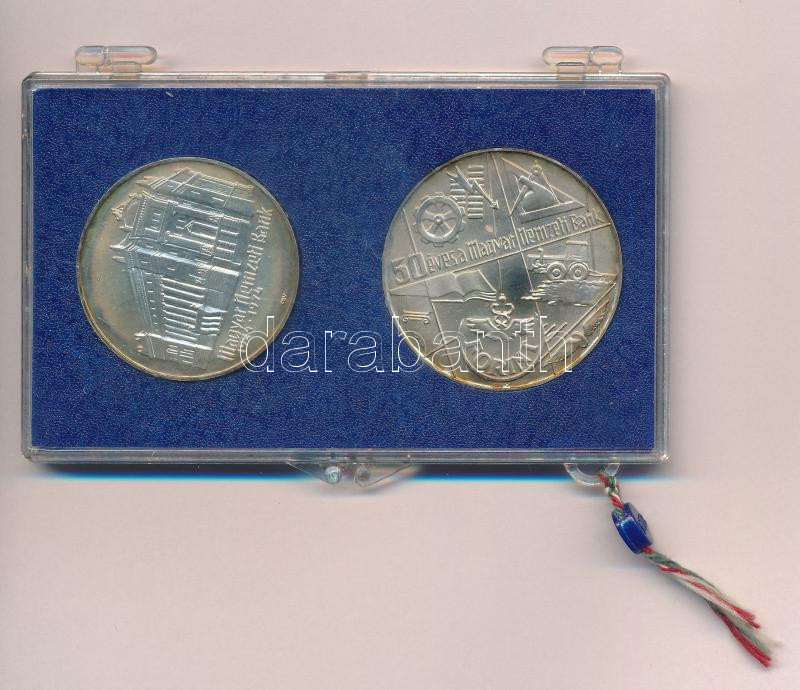 Beschreibung: 1974. 50Ft Ag + 100Ft Ag "50 éves a Magyar Nemzeti Bank" érmepár, eredeti "MNB" műanyag tokban T:BU patina Adamo EM44, EM45