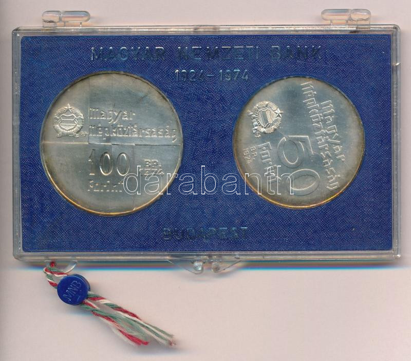 1974. 50Ft Ag + 100Ft Ag "50 éves a Magyar Nemzeti Bank" érm... https://www.darabanth.com/de/473-Fernauktion/473.0/Numismatik/Ungarische-Munzen-und-Munzen-mit-ungarischem-Munzzeichen~1500009/1974-50Ft-Ag-plus-100Ft-Ag-50-eves-a-Magyar-Nemzeti-Bank-ermepar-eredeti-MNB-muanyag-tokban-T~II3207117