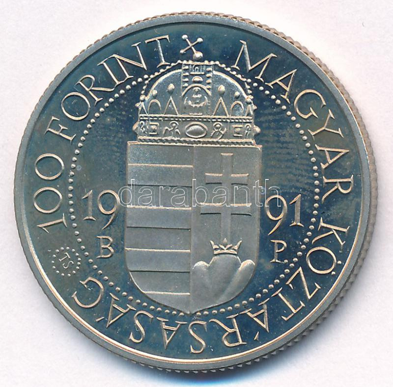 Beschreibung: 1991. 100Ft Cu-Ni "II. János Pál pápa látogatása" T:PP ujjlenyomat
