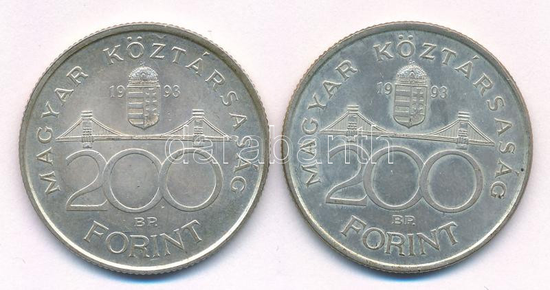 1993. 200Ft "MNB" Ag (2xklf) T:XF Adamo F13 https://www.darabanth.com/de/473-Fernauktion/473.0/Numismatik/Ungarische-Munzen-und-Munzen-mit-ungarischem-Munzzeichen~1500009/1993-200Ft-MNB-Ag-2xklf-TXF-Adamo-F13~II3211434