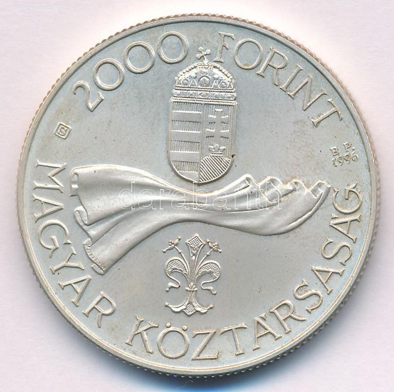 Beschreibung: 1996. 2000Ft Ag "Ötvenéves a Forint" T:BU patina