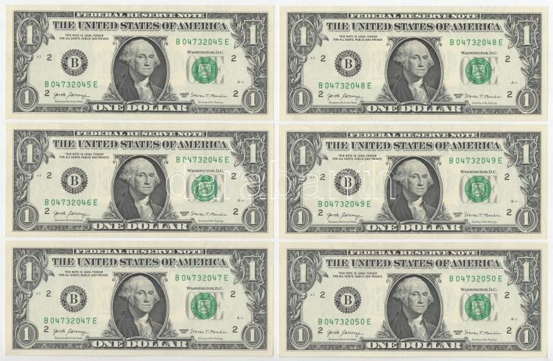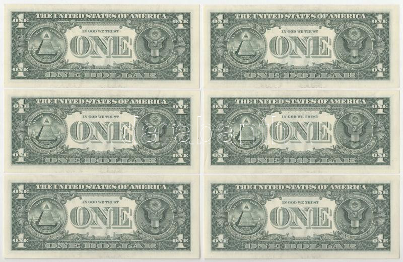 Amerikai Egyesült Államok 2017. 1$ zöld pecsét, "Jovita Carranza - Steven Terner Mnuchin" (6db) sorszámkövető T:UNC