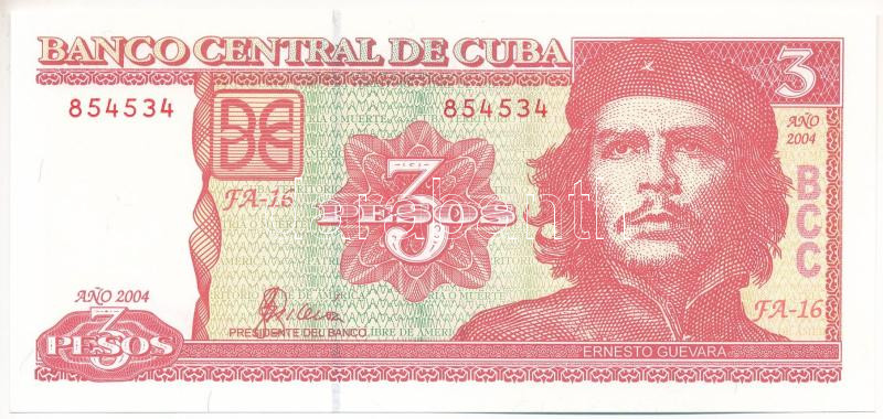 Kuba 2004. 3P "Che Guevara" T:UNC,AU az egyik sarkán vízfolt... https://www.darabanth.com/de/473-Fernauktion/473.0/Numismatik/Weltweit-Banknoten~1500015/Kuba-2004-3P-Che-Guevara-TUNC-AU-az-egyik-sarkan-vizfolt-Cuba-2004-3-Pesos-Che-Guevara-CU~II3205805