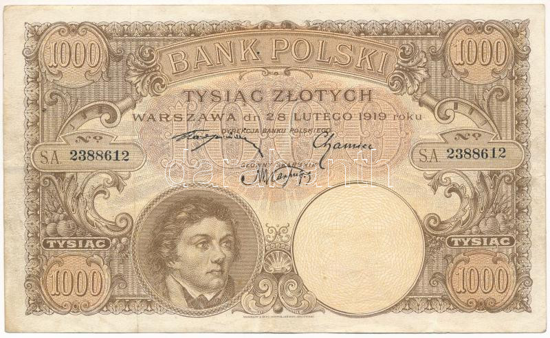Lengyelország 1934. (1919) 1000Zl T:F Poland 1924. (1919) 1000 Zlotych... https://www.darabanth.com/de/473-Fernauktion/473.0/Numismatik/Weltweit-Banknoten~1500015/Lengyelorszag-1934-1919-1000Zl-TF-Poland-1924-1919-1000-Zlotych-CF-Krause-P2359~II3203337